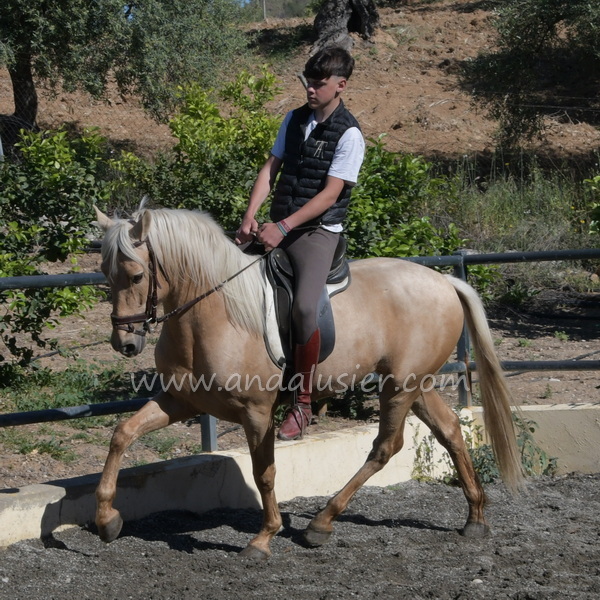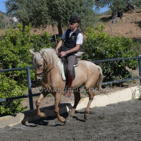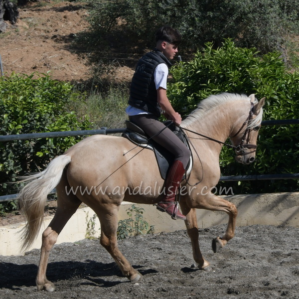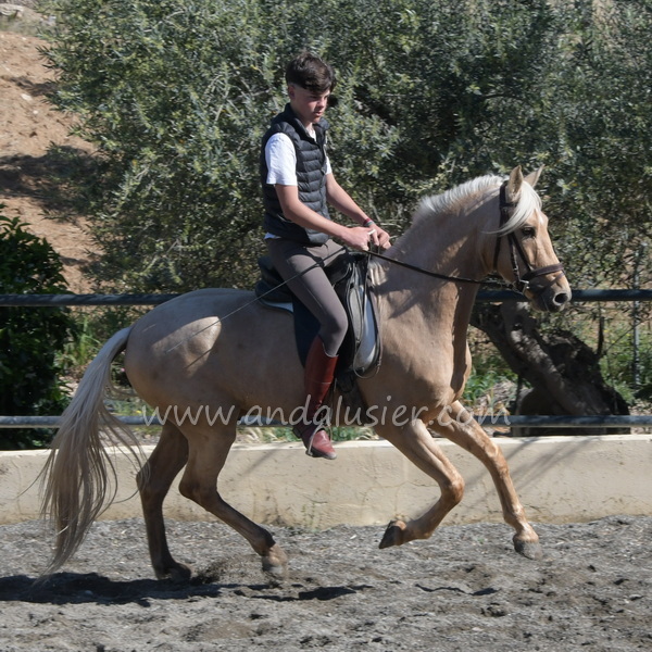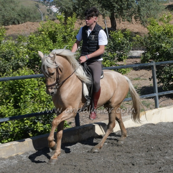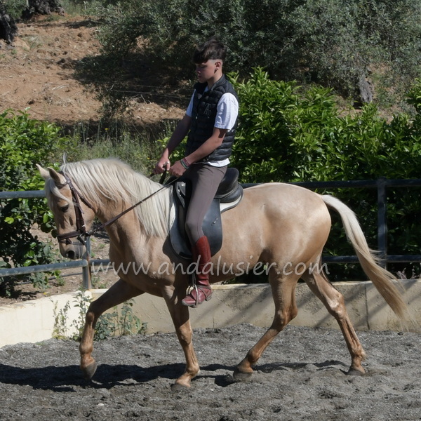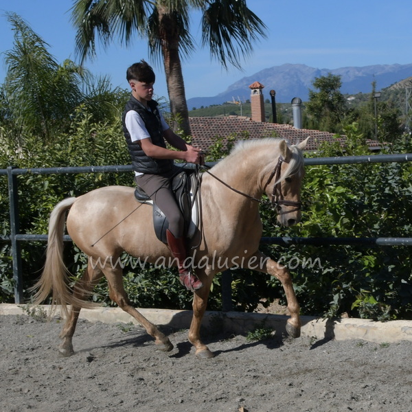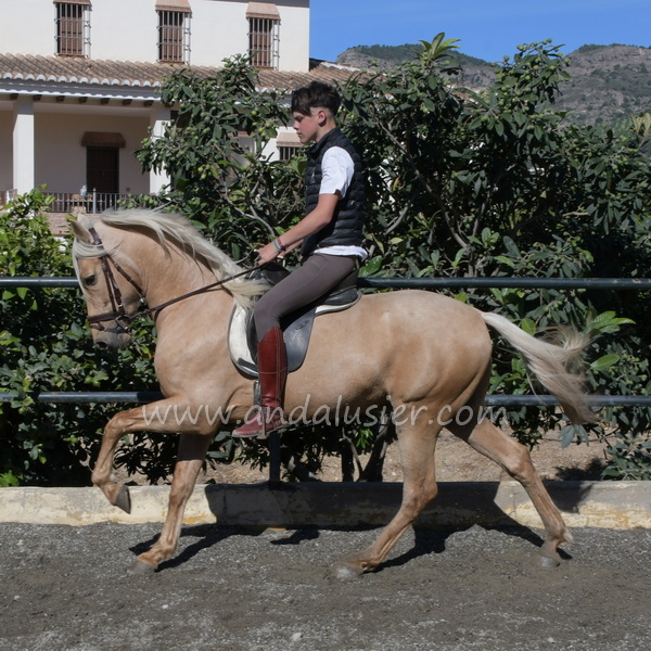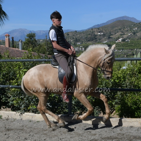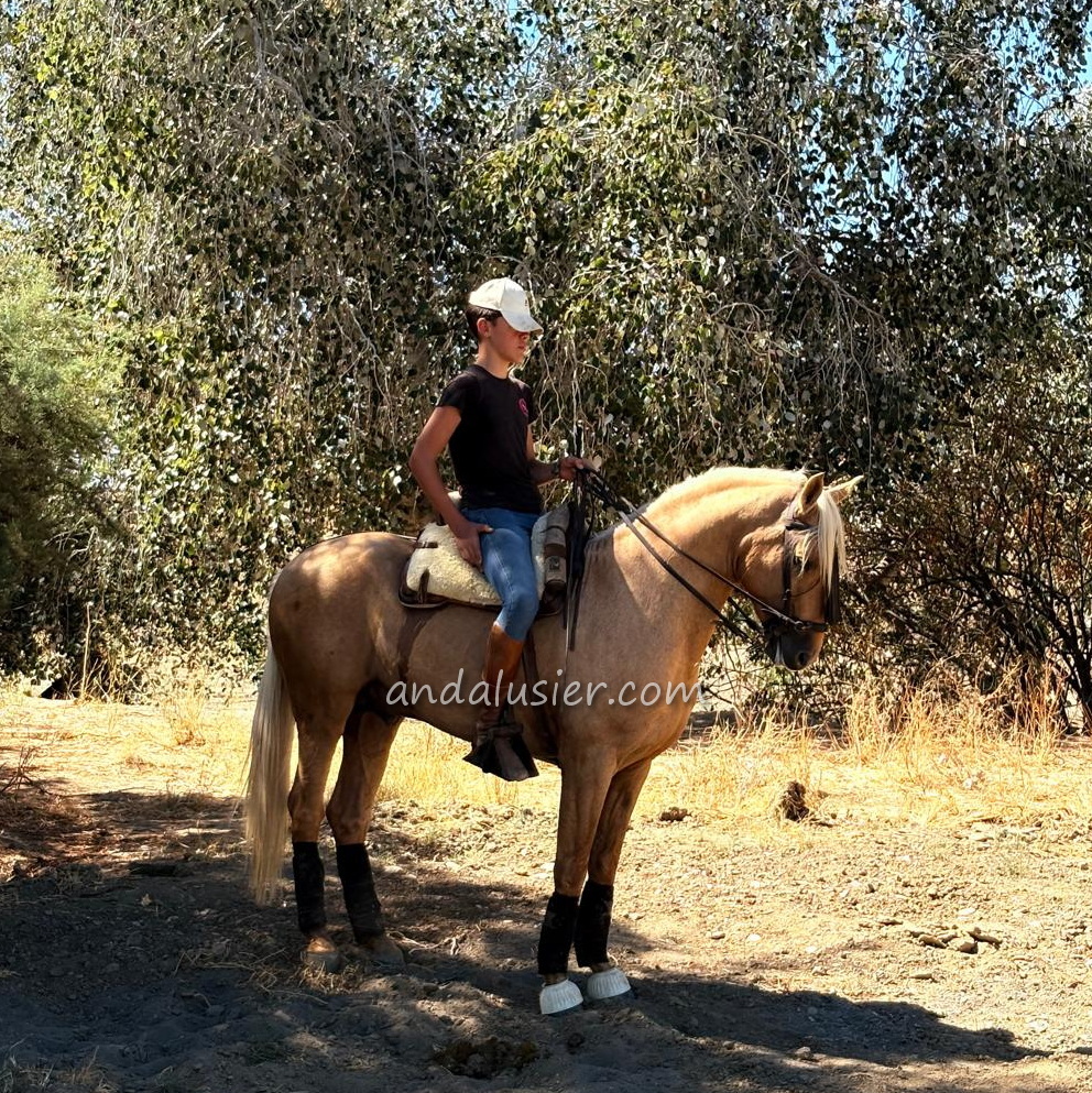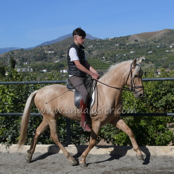 Beautiful palomino PRE stallion, safe and experienced hacking, easily bonding. Ideal for leisure riding and natural horsemanship.