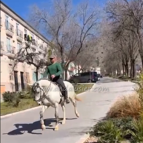NR Judio * 15/04/2017 is an experienced PRE gelding bred by the renowned Nicolás Romero (Romerito) stud. He combines a beautiful baroque conformation with excellent movement and an exceptionally kind and people-oriented character.