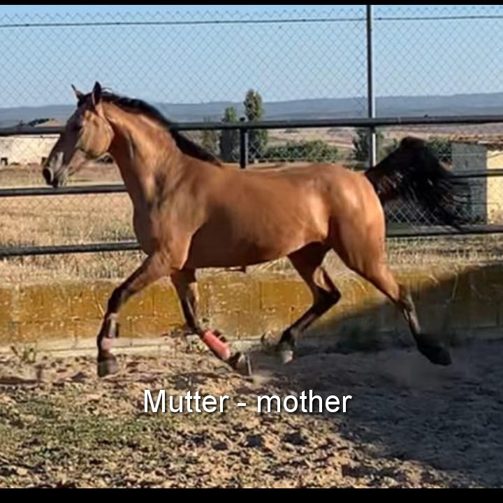 Jilguerito (01/10/2020) ist ein wunderschöner, cremefarbener Palomino Wallach mit liebenswertem Wesen und tollem Bewegungspotenzial. Er wird professionell geritten und überzeugt sowohl auf dem Reitplatz als auch im Gelände – ein echtes Vergnügen für jeden Reiter! Mit seinem aufmerksamen, ausgeglichenen Charakter lernt er schnell und zeigt sich stets motiviert und fein an den Hilfen. Wie auf dem Video zu sehen, lässt er sich auch von einem jungen Mädchen problemlos reiten und im Umgang führen – geduldig, freundlich und absolut zuverlässig. Jilguerito wurde von seinem Besitzer selber gezogen, die Mutter (S. Foto) hatte er auch seit Fohlenalter; sie ist ein absolut liebenswerte, freundliche und brave Lusitanostute. Jilguerito war auf Ferias und Romerias dabei, so dass er auch Trubel und Heiterkeit kennt. Er ist verkehrssicher, kennt Autos und Straßenverkehr und geht sowohl allein als auch in der Gruppe entspannt ins Gelände. Auf dem Platz zeigt er Talent für die Dressur mit geschmeidigen, harmonischen Bewegungen und viel Ausdruck. Ein Pferd, das mit seiner sanften Art, Lernfreude und Schönheit begeistert – der ideale Partner für Freizeit und Dressur.
